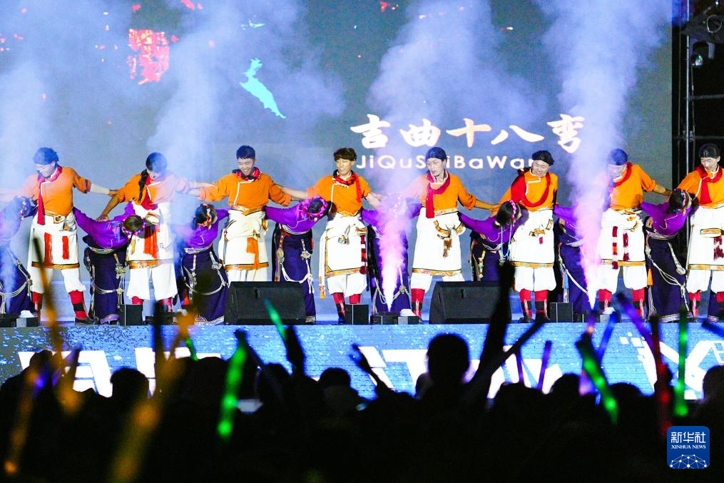 8月20日,在青海省玉树藏族自治州囊谦县,演员在2025澜湄国际影像周“星空音乐会”中表演。新华社记者 齐芷玥 摄