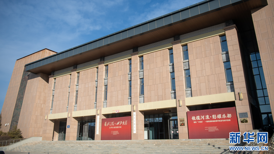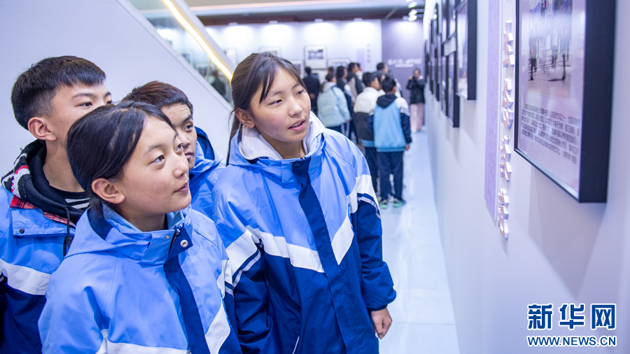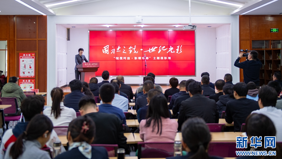 “国社之镜·世纪光影”新闻摄影展暨“镜揽河湟·影耀乐都”主题摄影展举办地海东市图书馆。新华网 潘彬彬 摄